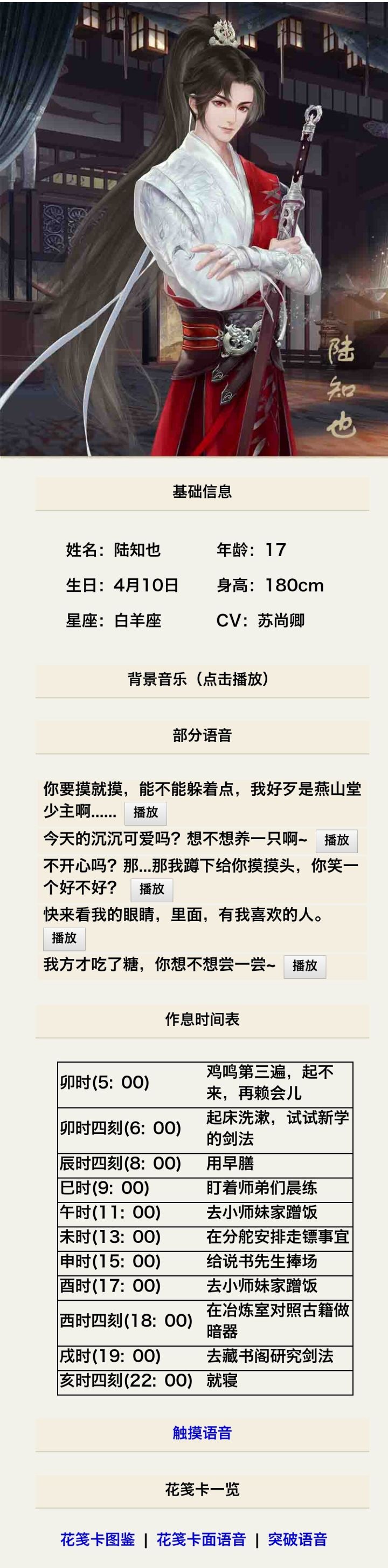 插播一条消息:【咕咕攻略组】APP/网站最近受到尚京春节气氛的影响,也发生了改变技术咕在维护后,发现【音乐播放器】功能开始发生变化:【音乐播放器】板块正式改名为【男主资料】板块将男主的资料进行整合,跟微博方面整合不同的地方就是有【语音】欢迎各位小阁主使用~进入方法:网页端/应用端主页→男主资料🔗:见评论区ps:目前只开放了【陆知也】的专属界面,以后还会进行更新,其他男主也在制作中,