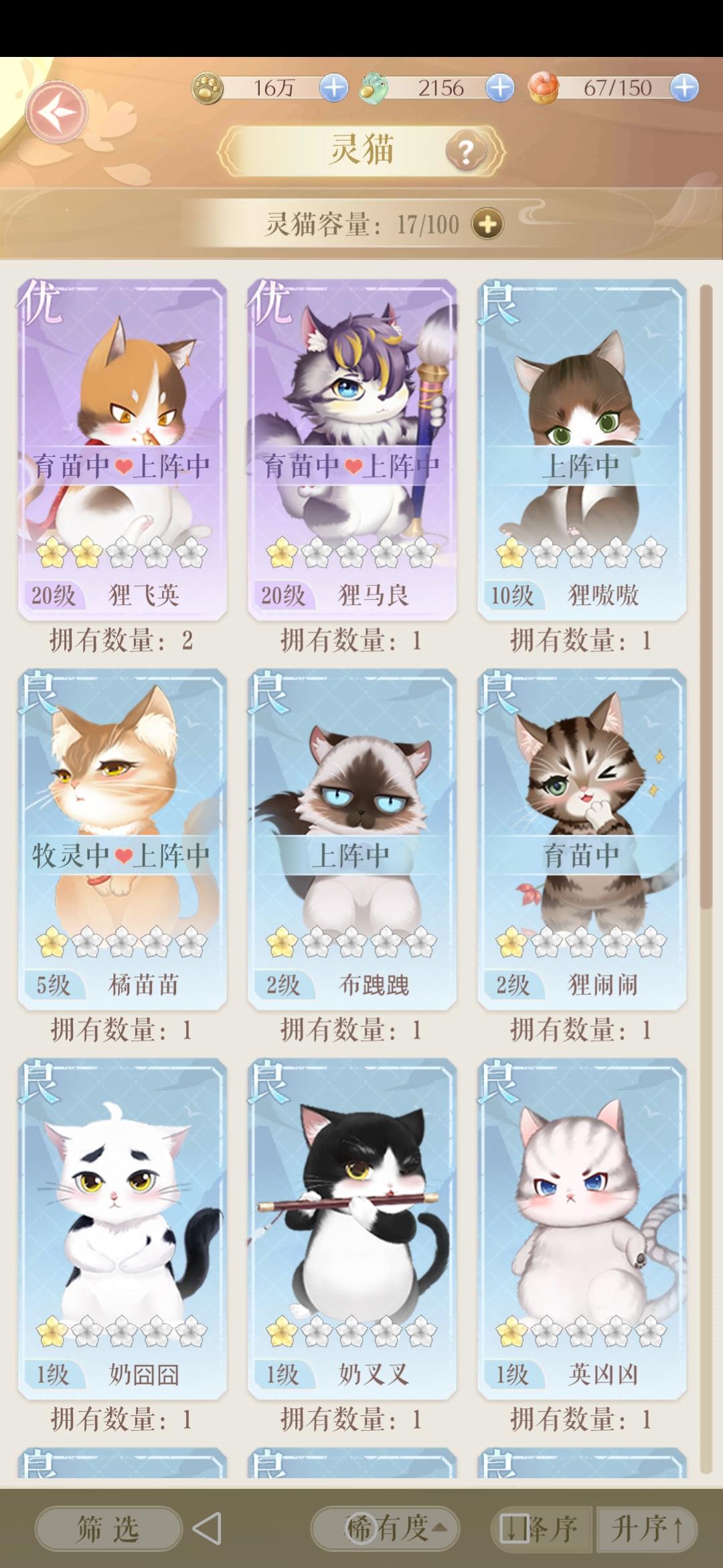 抽到同一种猫,除了数量变化,其他地方都看不出来我还有第二只刚抽到的……明明一个20级,一个刚抽到啊,也不能用来升星,那重了怎么办?白瞎?