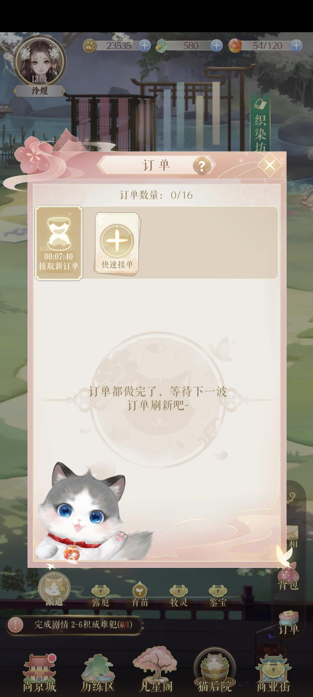 比如云绣坊订单,明明已经清空了,但是还是显示,我未完成猫猫我也喂过两次,但也是未完成状态这是bug还是我没搞对??