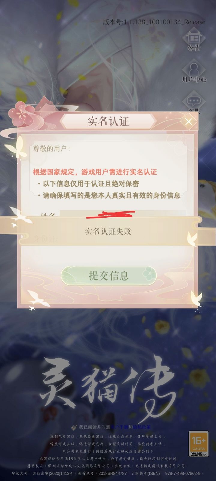 为什么啊啊啊,被安利到了,结果下完游戏,注册的时候实名认证死活不成功😭😭😭,我还拿身份证看了下,没输错啊