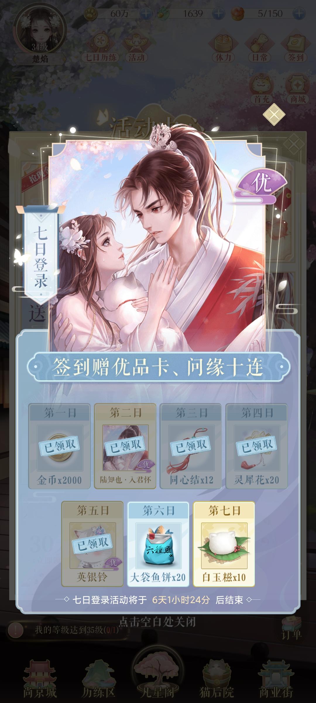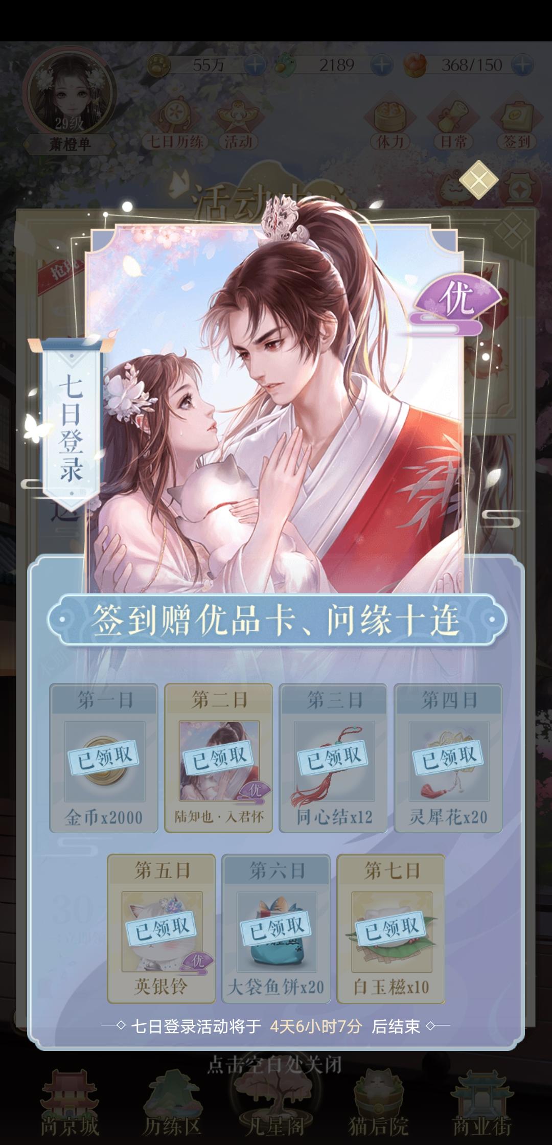 我的猫呢?!七日登录送的猫我前脚点了领后脚去看就不见了!还有珠宝坊那里为啥啥都不能做????