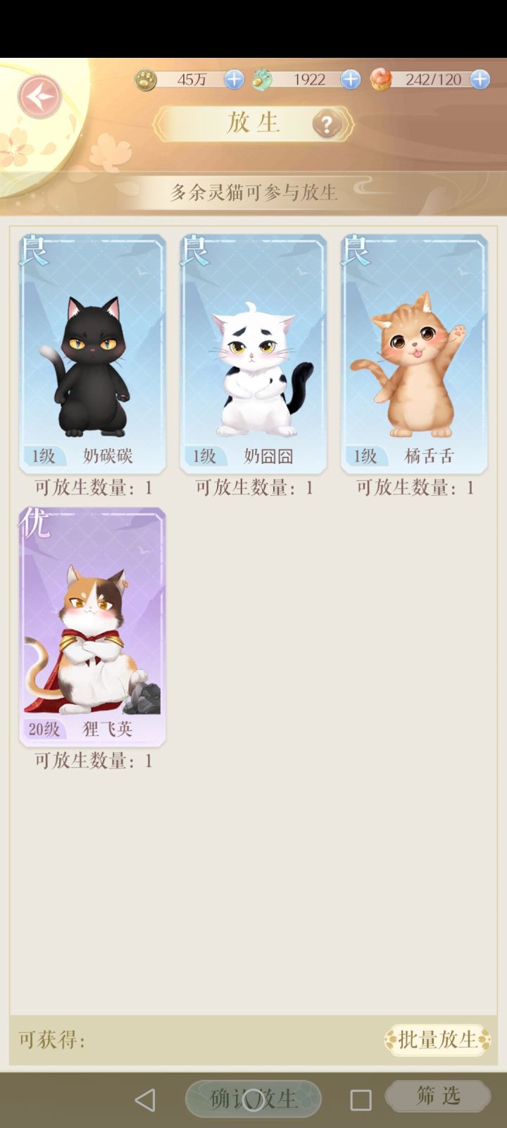 纯新人求解答,优品猫猫重复了是不是啥用没有啊,升星用不上,放养显示的是我养过的那只