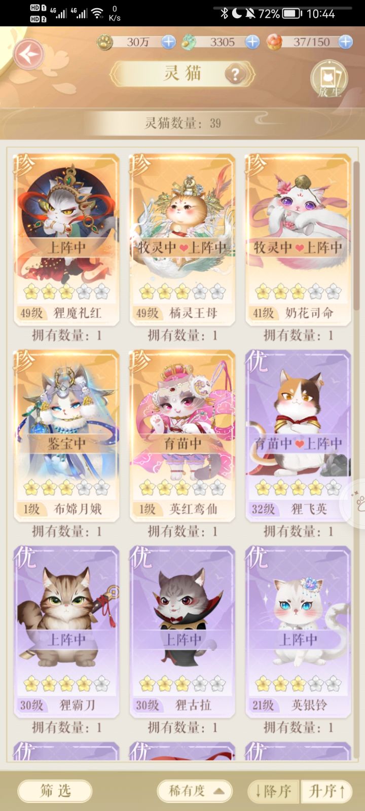 淡游前都抽了 有三只珍猫 四只优猫 n只良猫