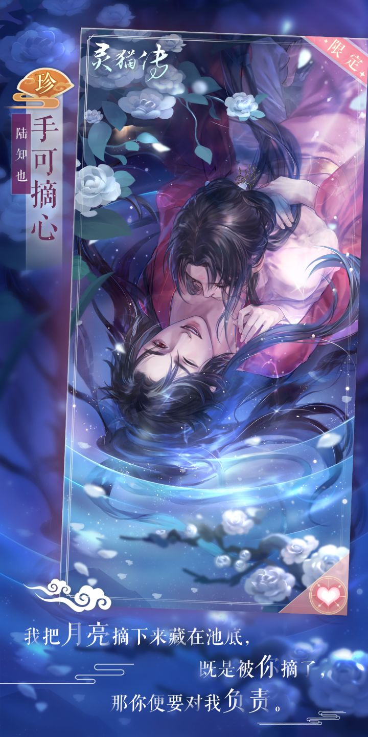 潜入水底,少年依旧笑得神采飞扬。一轮弯月静影沉璧,手中宝珠翠羽明垱。小师兄手捧稀世夜明珠相送,摘下的不止宝珠,还有他一颗真心。“我把月亮摘下来藏在池底,既是被你摘了,那你便要对我负责。”❤️卡面属性:感知❤️获得途径:「冬日祭」主题问缘中获得。详细说明请查阅游戏内公告。————————♥大小姐们都在这♥官网:https://cat.dailygn.com/?from_source=