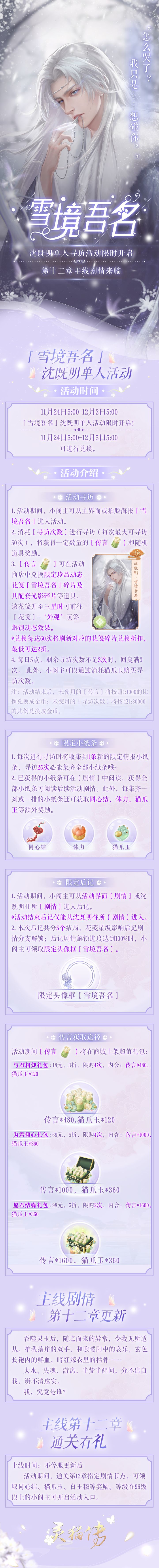 【活动预告】沈既明单人活动「雪境吾名」限时开启,第十二章主线剧情来临