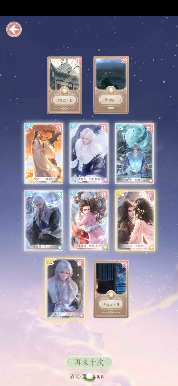 祁清和的立绘是五个男主里面比较稳定的,不会换卡换脸。他真的非常正人君子,蓝衣飘飘的公子,虽然看起来弱不禁风,却可以一掷千金“五万”,可以将订单一把火烧个干净,付诸一炬的立绘深得我心,那种不把别人放在眼里的潇洒,太吸粉了。也很喜欢梦醒见你那张卡,可惜太费钱拿不到。但是他对女主的感情莫名其妙,其实宁北、安歌也是这样,既没有从小的相识,也没有慢慢的深入的了解,怎么就能把一个人看得那么重要并放在心上呢?我每次接受他们的好意都觉得受之有愧,这种多线发展的剧情显得女主又渣又茶。