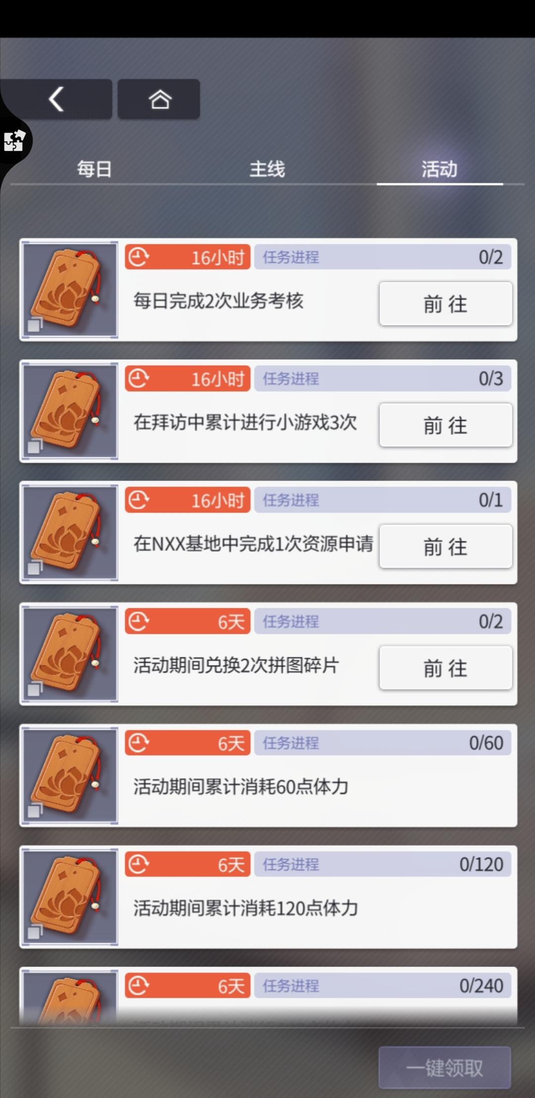 u1s1,像我这样一早上起来就把日常全部完成然后等活动更新的,我是万万没想到活动里还有完成两次业务考核这种,我也万万没想到这“两次”和日常的两次次数不能联通,也就是说我一早上就把有且仅有的两次资源关卡次数用光了,我就少了今天活动的奖励。我是真的没有想到的,在我的印象里我其他的游戏好像都可以联通,就有点,些微的,迷惑。