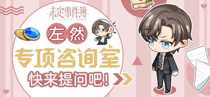未名市专项咨询室开放啦!诚邀忒弥斯律师事务所高级律师左然参与专项咨询室提问环节,左然 是否可以回答律师们心中的疑问呢?本期互动,参与话题讨论“你想和左然专项咨询什么内容?”,快来评论留下律师想向左然咨询的内容吧~游戏内专项咨询活动已限时开启,完成专项咨询,即可获得丰富奖励,并有机会解锁左然服装【左然·探险】!详情见活动链接>> ——————————▌★联系我们:官方微博:@ 未定事件簿官