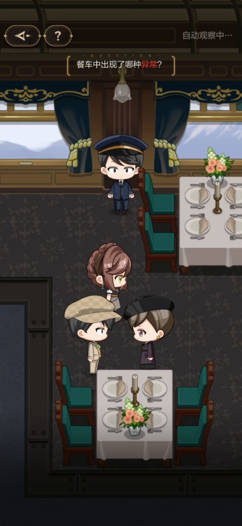 餐车中出现了哪种异常——沙发和钢琴消失了吧台和沙发桌边有多少平底杯——6个有多少出现异常现象的客人——3位