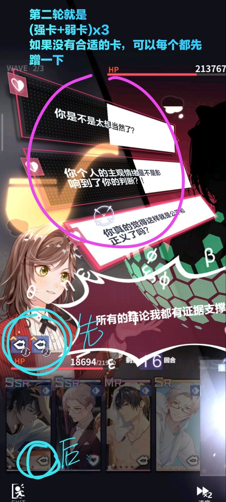 我应该是最后一个知道可以改变出卡顺序的人首先大家应该明白自己的哪张卡的技能是最强的然后记住这些卡 在第一回合先出buff卡 先出3回合buff 然后以层次化的方法将这些buff卡打出后 再把最强的暴击卡打在最后的血条上 因为你要用叠加最强的buff去干掉最厚的血条 其次是用最弱的卡去干掉最短的血条