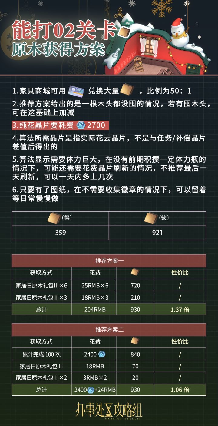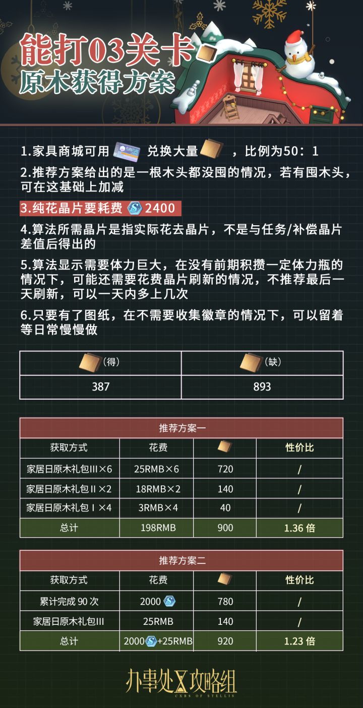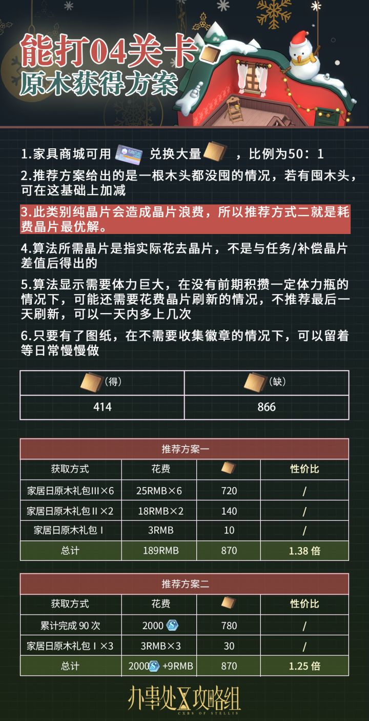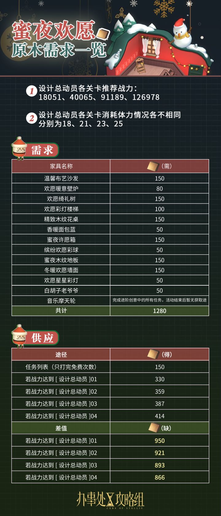 温暖的壁炉烘着空气,弥漫着面包箱散发的甜蜜味道。哪怕是北风呼啸,白雪飞飞的冬日里,我们也让你温暖如春。不过要去堆雪人的话,记得做好保暖哦!PS:1.算法所需晶片是指实际花去晶片,不是与任务/补偿晶片差值后得出的2.算法显示需要体力巨大,在没有前期积攒一定体力瓶的情况下,可能还需要花费晶片刷新的情况,不推荐最后一天刷新,可以一天内多上几次3.只要有了图纸,在不需要收集徽章的情况下,可以留