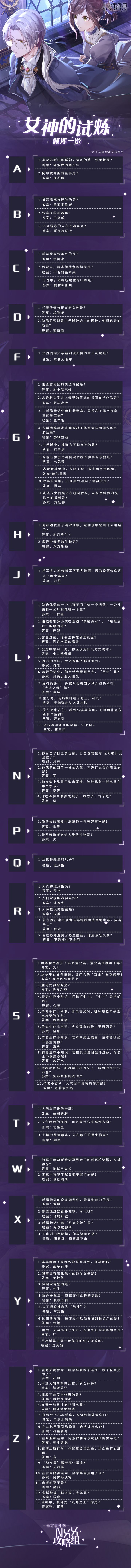 【女神の试炼】题库一览(目前图上为85题,待后续更新)是你吗,明明打过了boss却败给了猫头鹰?是你吗,明明打败了boss却不点那猫头鹰?也许律师们被希腊神话故事难到头秃,也不知道土壤里有多少微生物。如果你也有一样的烦恼,找我们NXX就对了。不要怕,别心急,字母检索带你快速通关她。看这里,点开他,打开即可享受女神の宠爱。从此我们都是未名大学全能系优秀毕业生