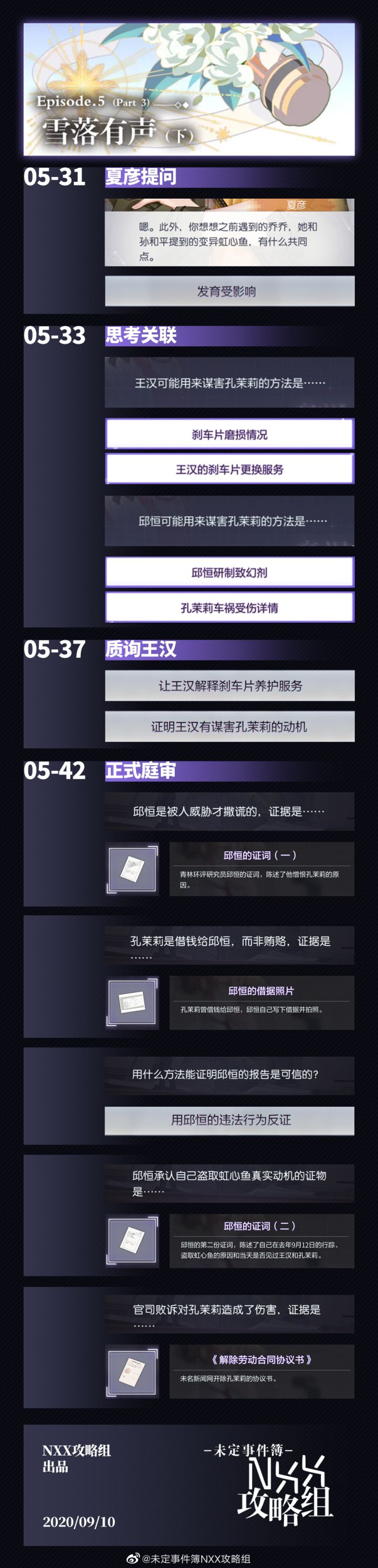 【主线剧情攻略】第五章雪落有声(下)思考关联 、庭审等任务具体孔茉莉的案情真相即将水落石出!王汉与邱恒究竟有什么关联.....什么?你说你看不出?没关系,没关系!让NXX来帮你!轻松破解一切难题,关联问题如同连连看一般~so easy!