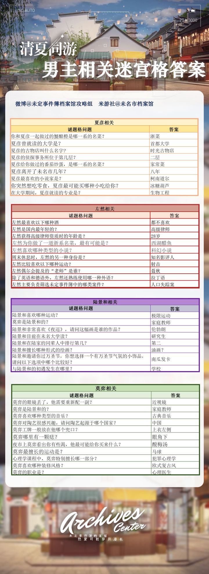 谜题格答案(持更 欢迎评论区补充