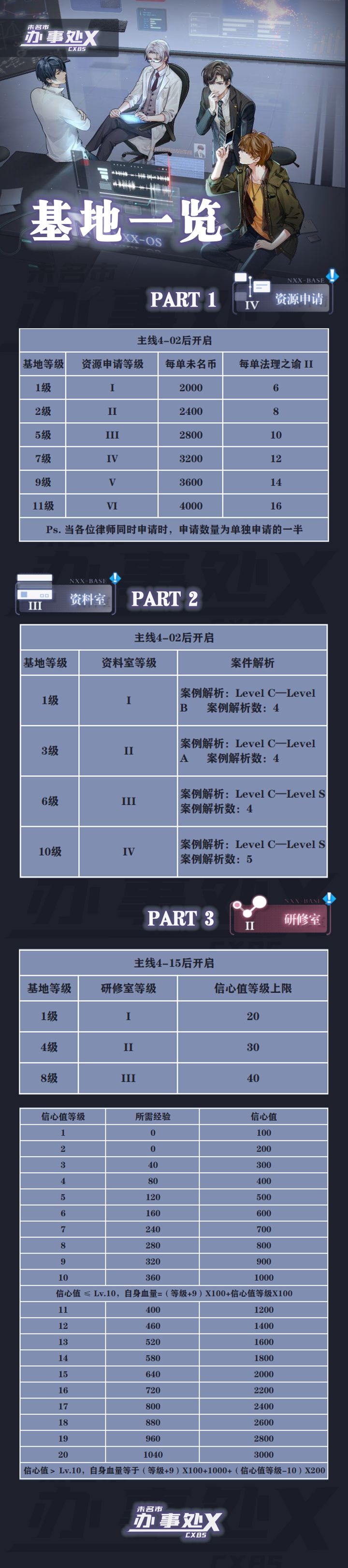 未名市的各位律师,大家好。这里是代号为cxbs的未名市办事处X攻略组。本组内全体组员,将秉持着为爱发电的热情和初心,贯彻尊重原创,积极秃头的精神,认真地做好每一条攻略。希望能够陪诸位律师在未名市一起度过美好时光。我们在制作攻略时会优先选择优先级高热度高的攻略进行制作。为此,我们随后会开放Q&A帖子,对各位律师的高频问题进行记录和统计,确认攻略制作的先后性。攻略组暂时不招新专业团队在线,我们