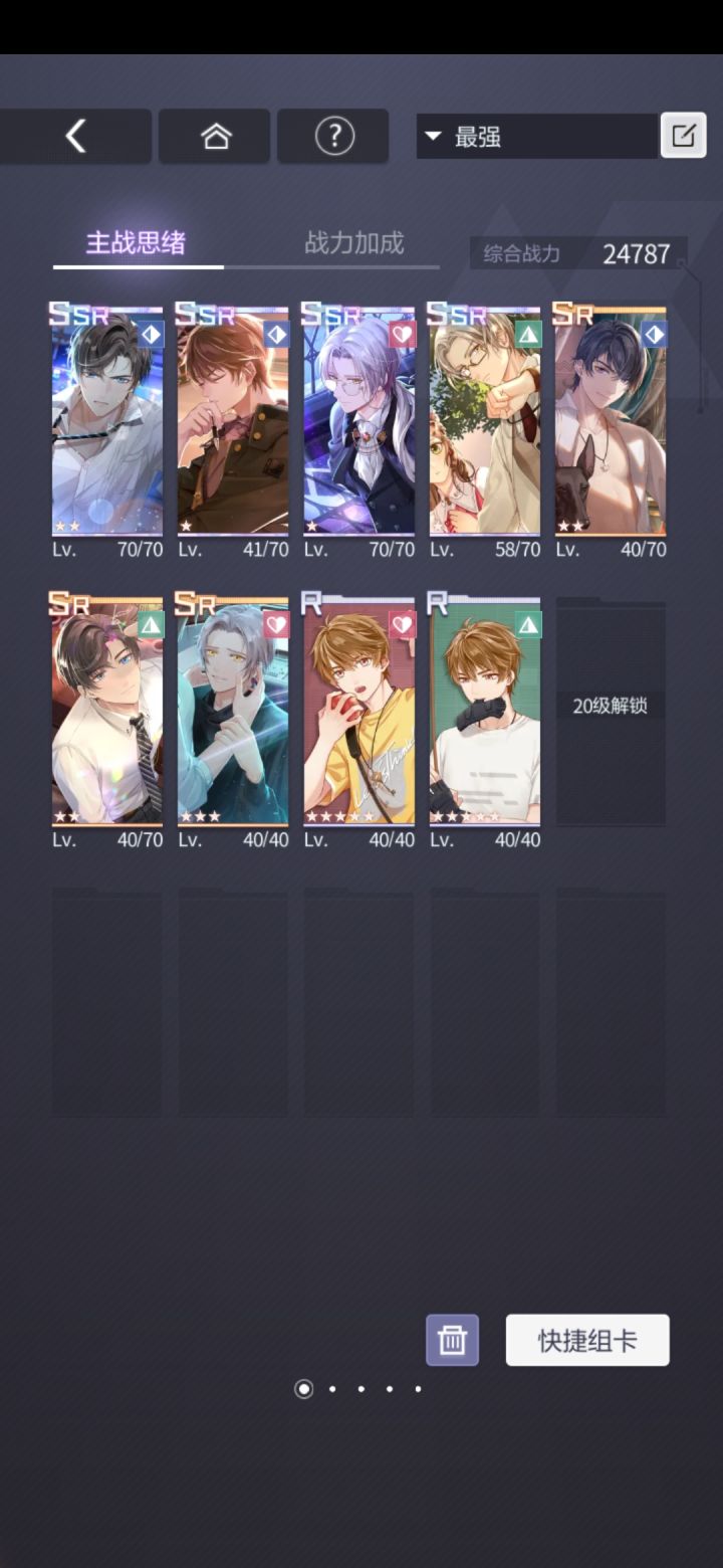 1.这个游戏的战斗界面右下角可以开二倍速和自动出卡。2.签到界面的初代可以调戏3.你游有助战功能,记得塞点r卡进去↓4.你游的卡是带技能的↓5.你游的部分r卡的技能比较特殊,必须放在助战位才能发动,塞卡的时候记得带上这些↓6.你男人的衣服能撩(其实只有陆总和竹马),还八块腹肌。7.在玩家个人主页可以换掉你不喜欢的野男人。8.你游支持强娶,氪金就能届到↓