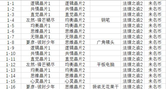 因包含为目前为止我的主线和异常以及女神试炼基本打完了,准备开始屯材料养卡了所以除了每天限制次数的狗粮外,进化材料怎么屯就需要一个整合因此我就自己看着图鉴画了个草表目前只总结了卡牌第一次进化所需的材料(进化二我的狗粮不太能支撑啊)(米游社的帖子也是本人发的)事先提醒 本律师不会制表(在学了在学了)【如果出现数据错误那可能是我的眼睛出了问题 请发现的律师帮忙指出蟹蟹】那么开始吧我们先来