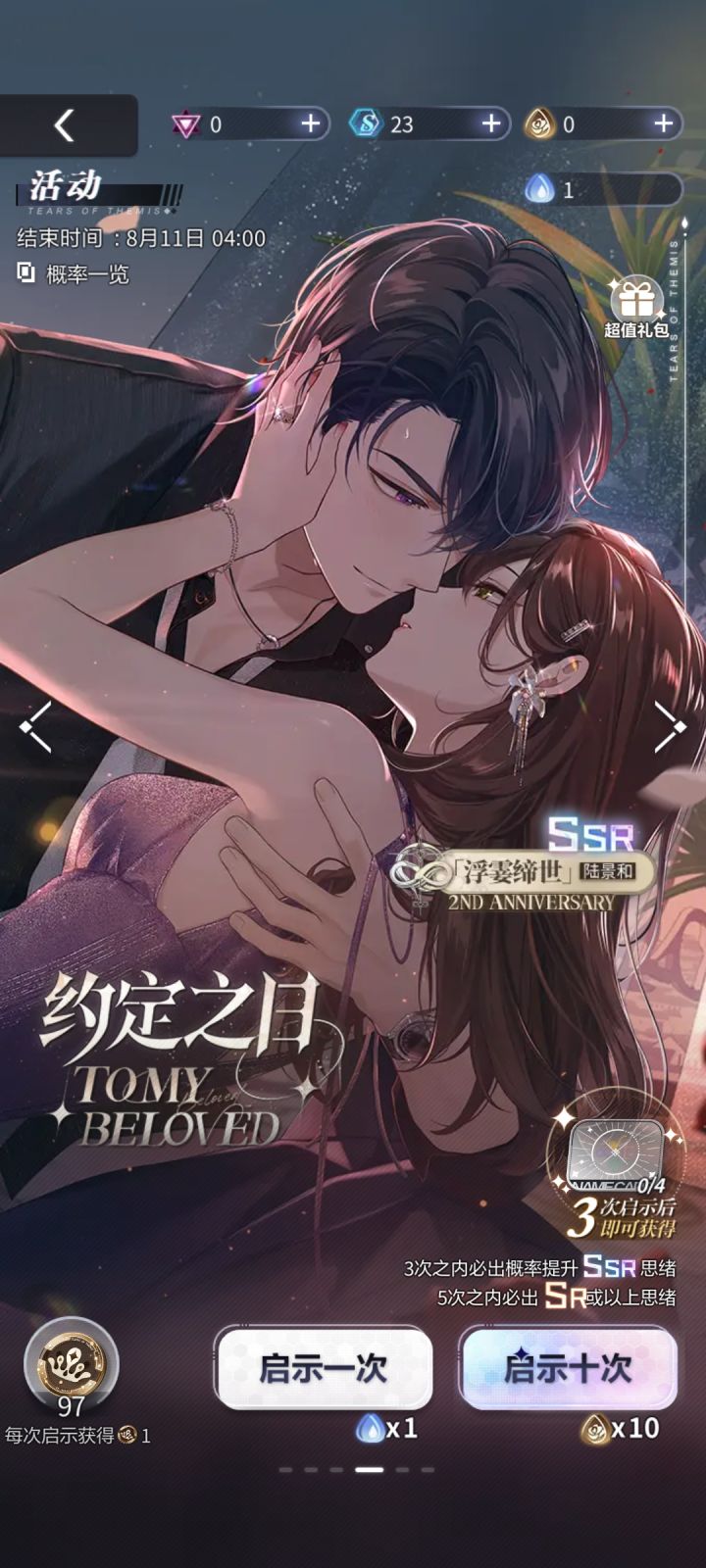 想不到我这种只氪过两月卡的有机会硬吃保底,百抽强娶……感谢上次月卡剩下的一点晶石晶币,感谢我那堆积攒了许久没去通关的剧情、异常、个人线,就不感谢给我送一堆抽奖材料的官方活动了,因为保底之仇我还记着。另外,真的有本命诅咒这种东西的吗,我的ssr全是左然。