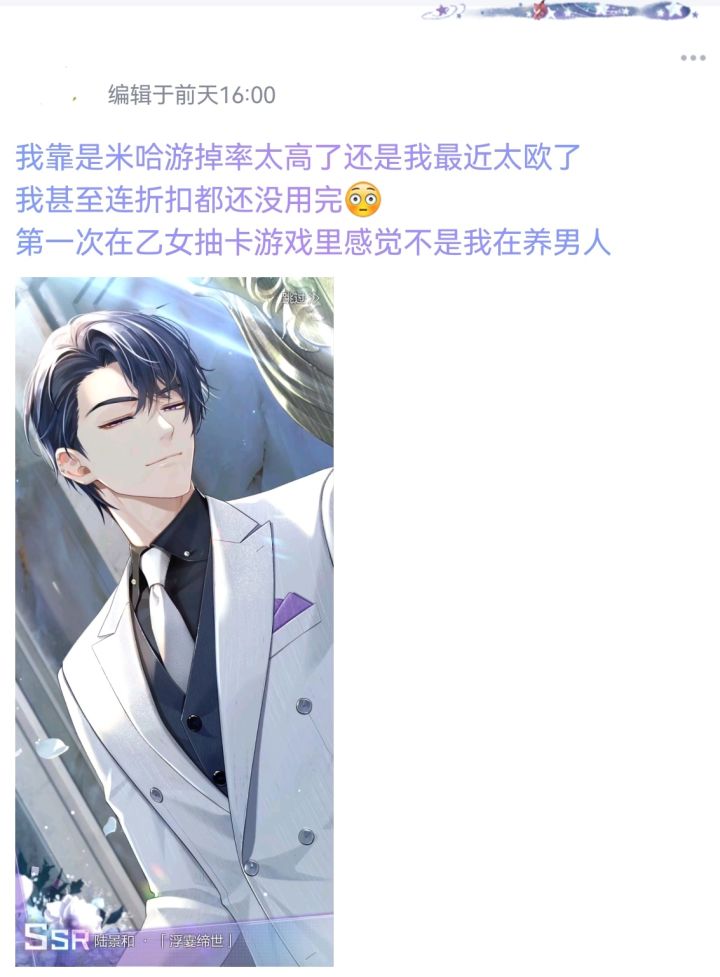这游戏真的。你退坑一段时间,回来必中ssr上次我也是退坑了一段时间,当时好像正搞旅行活动,就思酿那张卡,十连就出了。这次退坑一年回来,又是十连。就感觉,很……良心。有姐妹有回归码的可以给我,我填一下