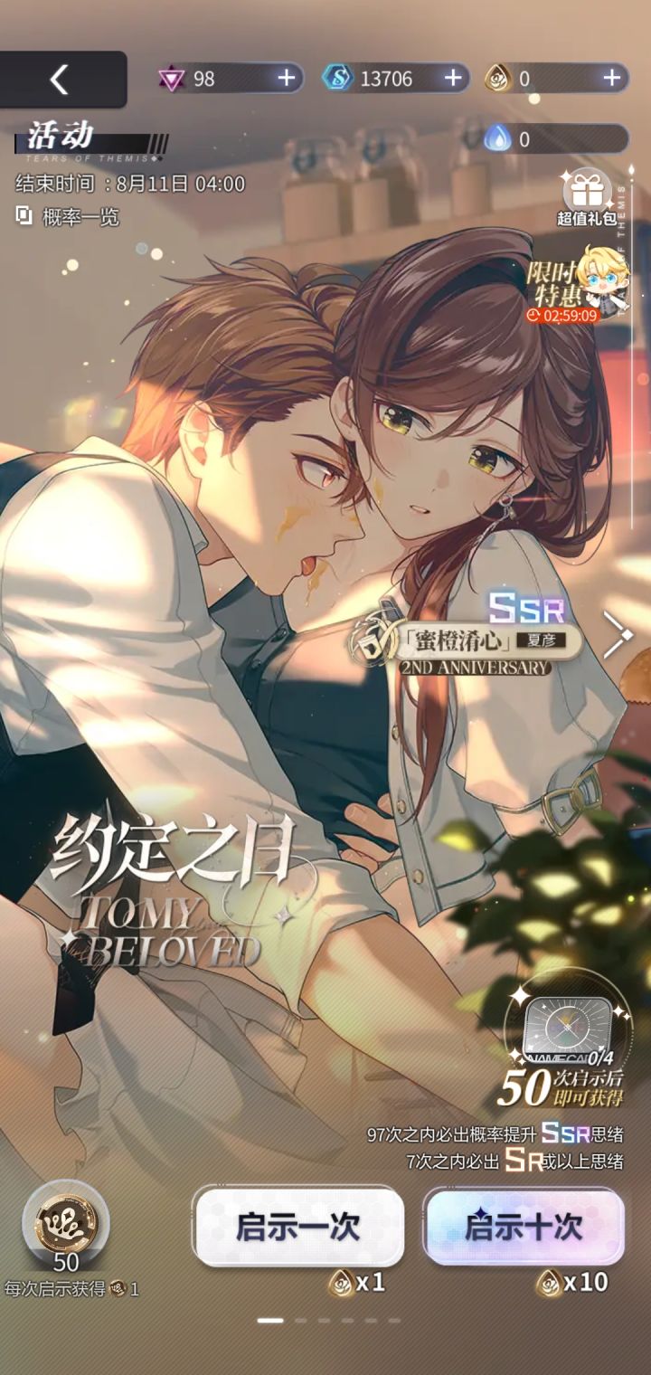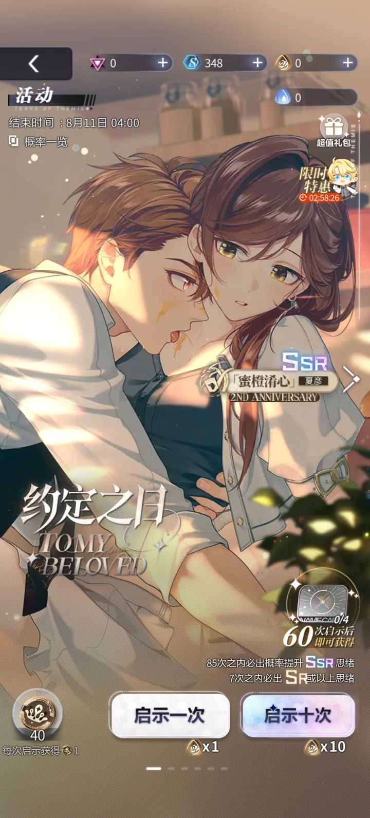 看到有人说好运来播放10抽就出,专门放mv版。出了!让我这绝世非酋三十出再出个夏彦。谢谢你祖海老师!!