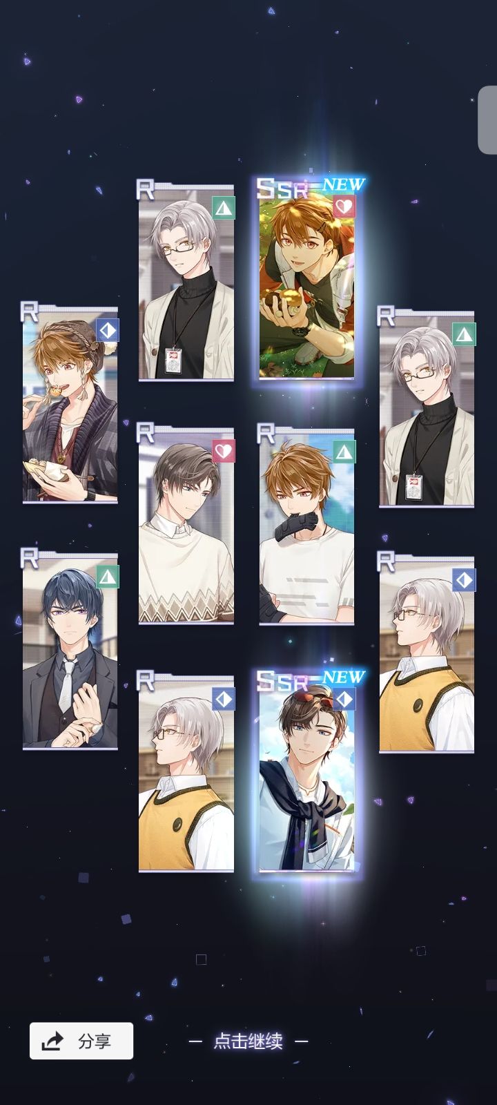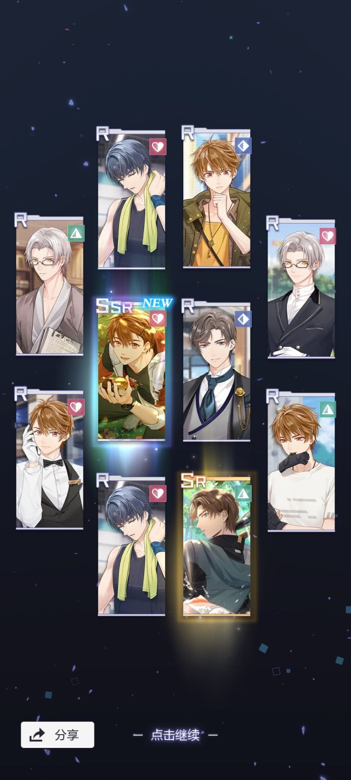 我应该还算比较欧的吧……三十抽,十抽拿了陆景和的一张,33抽拿了莫弈的,左然生日的时候,前十抽拿了那张-绿色的左然(记不住起叫什么了……囧😓)后面第四十六抽的时候出了日夜相生,真的爱死这张卡了!啊啊啊啊啊!真的太好看了,截在了我的审美点上,可惜没时间拿到新出的MR卡有点可惜(╥ω╥`) 。然后,我的卡好不平衡,一大堆逻辑。心塞(´-ωก`)。然后第五张也快了争取第二十抽的时候拿到 !现在只有三个币是因为之前换了点材料。以及保底是继承上一次的(也好可惜上次的泪之铭没换,三十多个啊,心都在滴血(┯_┯))