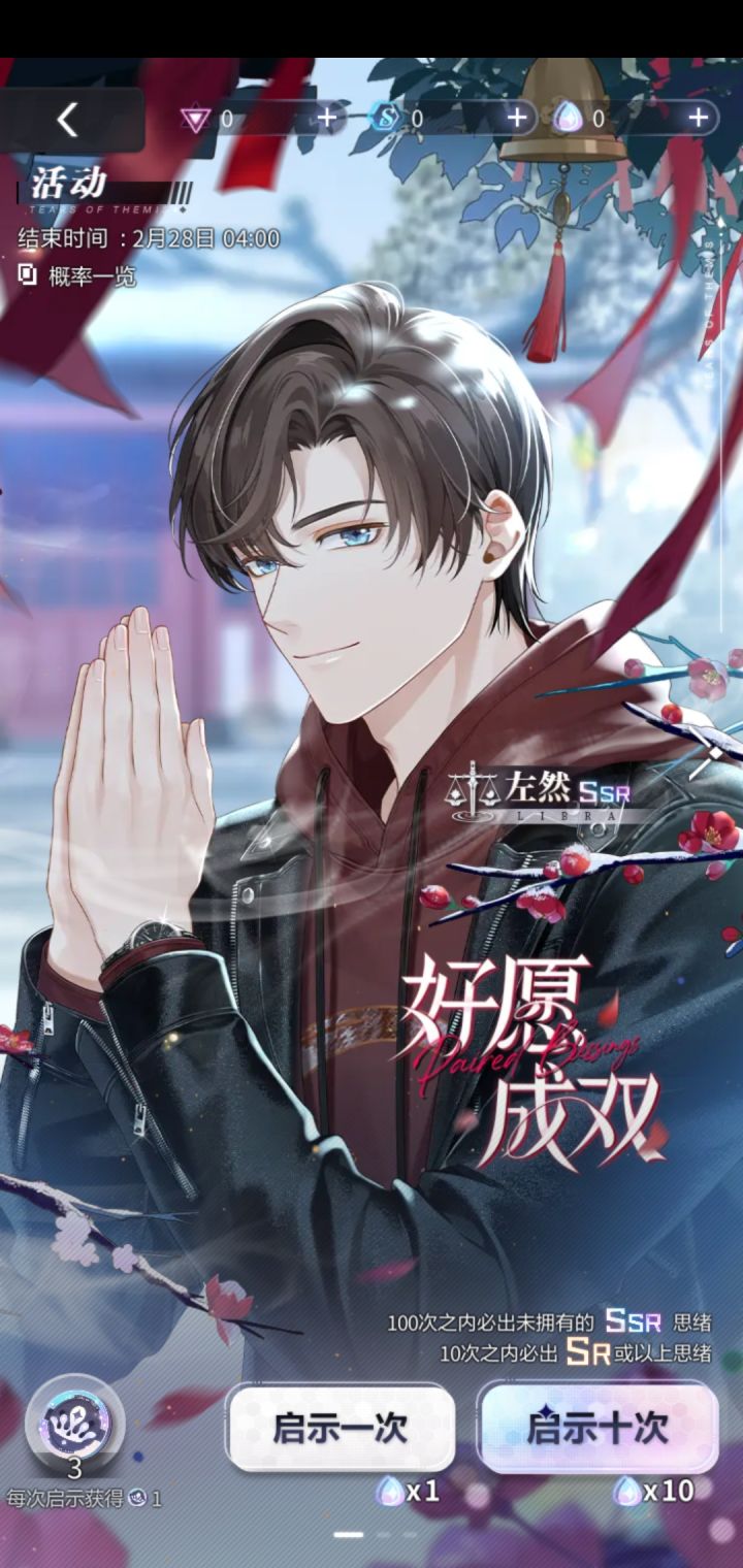 一发十连四黄左然活动卡,新年卡一百抽之内全部到手,莫弈夏彦甚至直接单抽出货,小陆总一发十连,就左然磨了我七十抽别问,问就是吃席