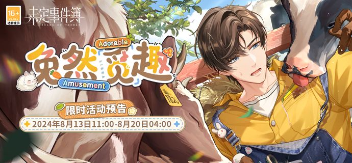花团簇拥环绕,琥珀知晓爱意。2024年8月13日11:00,「兔然觅趣」限时活动即将开启! ✨「兔然觅趣」限时活动预告▶活动时间:2024年8月13日11:00-8月20日04:00活动期间,律师将与左然一同前往城郊生态农场的互动园区,观察并拍摄小动物。完成毛绒相册收集可得【未名晶片】及多种素材奖励。累计收集所有图鉴即可获得活动限定徽章【兔鼓鼓】※解锁条件:完成主线关卡02-28 ※更