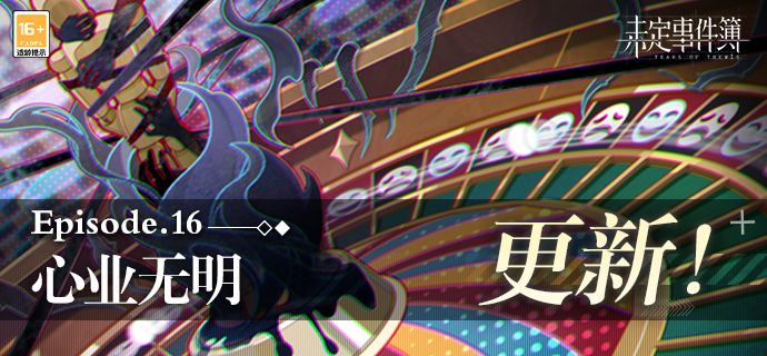 1月7日11:00,主线第十六章《心业无明》更新!以下内容即将开放! 一、主线第十六章更新完成主线第十六章所有关卡还可获得【女神之泪】×1 、【未名币】×10000、 【法理之谕IV】×10的章节奖励※解锁条件:完成主线关卡15-22二、主线第十六章异常关卡同步开放完成主线第十六章异常所有关卡可获得章节奖励:陆景和SR【斡旋】思绪残影×10、【未名晶片】×100、【未名币】×10000※