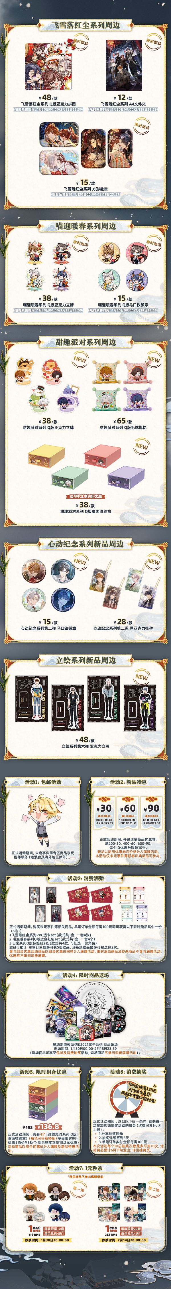 《未定事件簿》天猫商城新春庆典活动即将开启!※活动时间:2022年1月30日00:00-2月18日23:59✨多款新品限时预售※预售时间:2022年1月30日00:00-2月18日23:59-「飞雪落红尘」系列 徽章、绢布折扇、屏风色纸、亚克力挂件、亚克力拼图、文件夹 与他看遍浮世万千-「喵迎暖春」系列 Q版亚克力立牌、马口铁徽章 定格暖春记忆✨多种新品周边开启通贩-「嗷呜」系列 毛