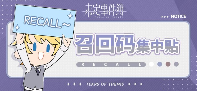 「回归有礼」召回活动正式开启!活动详情链接为了方便律师们互相交流专属召回码,我们特地开设了召回码集中贴~欢迎律师们在本贴下分享你的专属召回码,为了保证《未定事件簿》Tap社区版面的整洁,在社区内发布的律师召回相关帖,将会被版主酌情整理,移动至【召回码分享】板块内!希望各位律师理解。另外,召回集中贴内请勿留言与召回信息无关的内容,请勿留言涉及色情暴力等不良信息,违反规则的内容将会被删除处理。谢