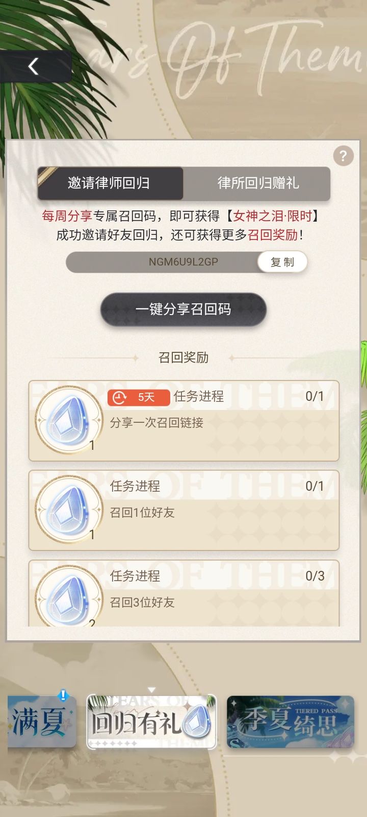 召回码NGC7NUXALP回归的姐妹看过来!填一下召回码我们都有泪拿!祝回归的姐妹一发入魂!