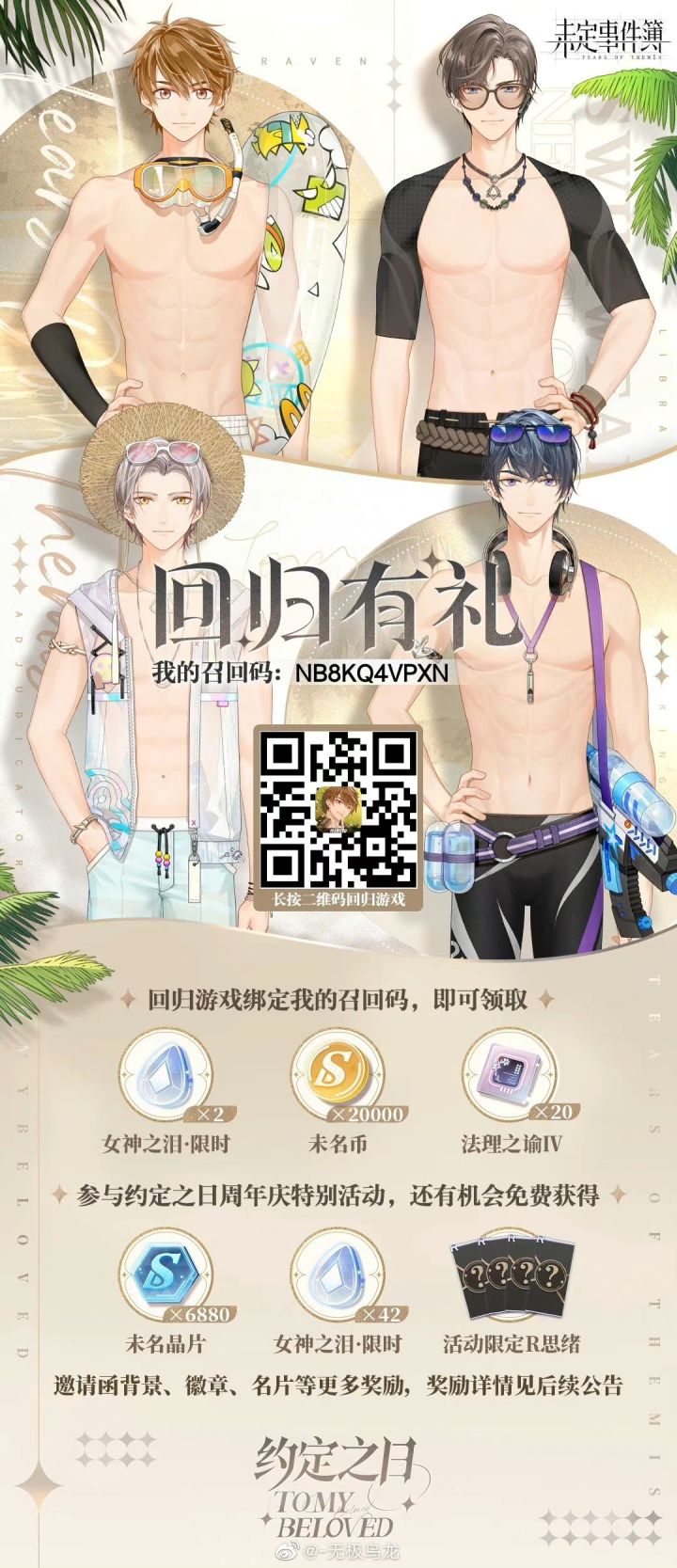 姐妹们,我把回归码单独发在评论区,有需要的一键复制就可以啦!NM8XRLDQ6N,有回归的姐妹帮帮我填写可以获得两个女神之泪,二万金币和二十个法理之瑜。也祝各位夫人一发入魂抽的想要的卡。