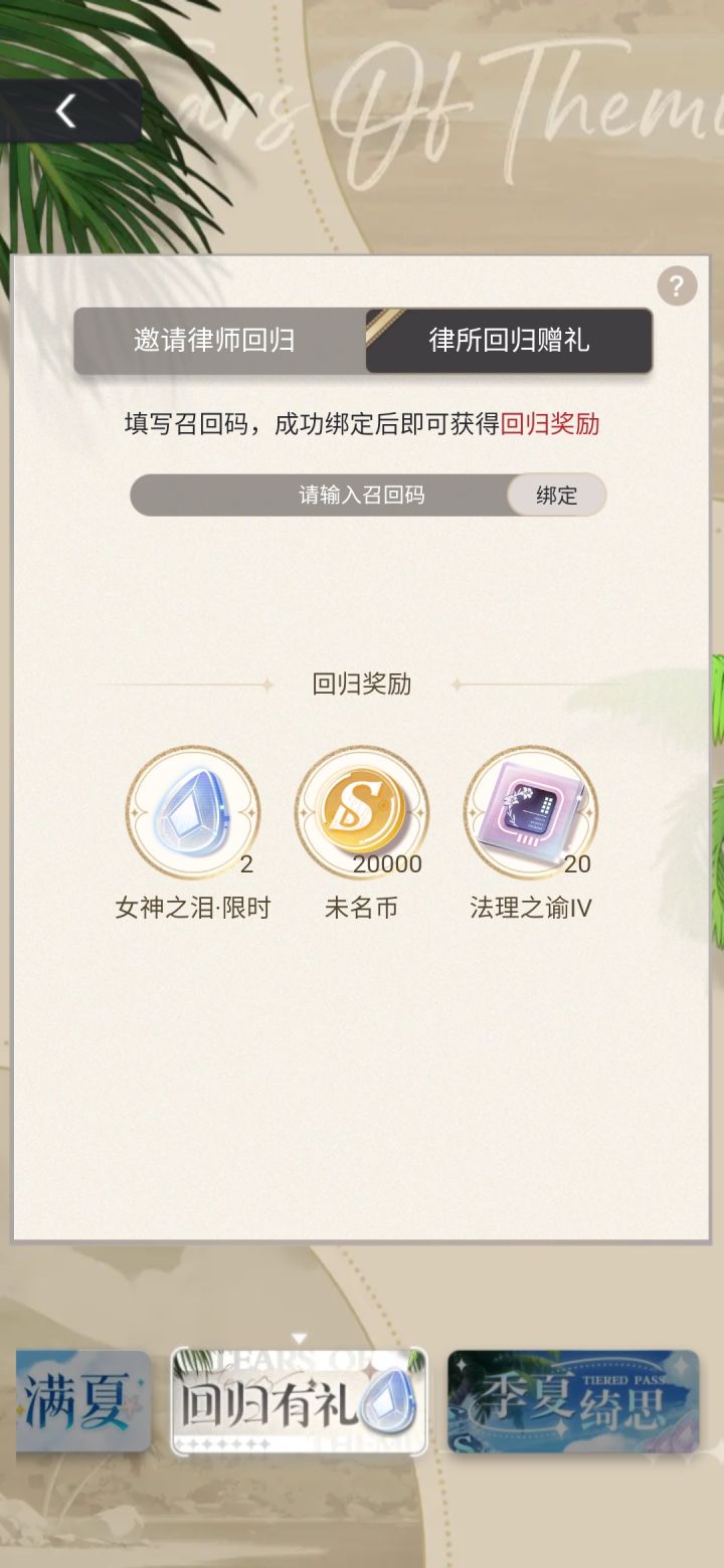 回归姐妹填召回码看看这里NG7E3533GP,祝回归的律政佳人欧气满满!!填码有两颗泪拿哦,可以抽周年卡池的!!