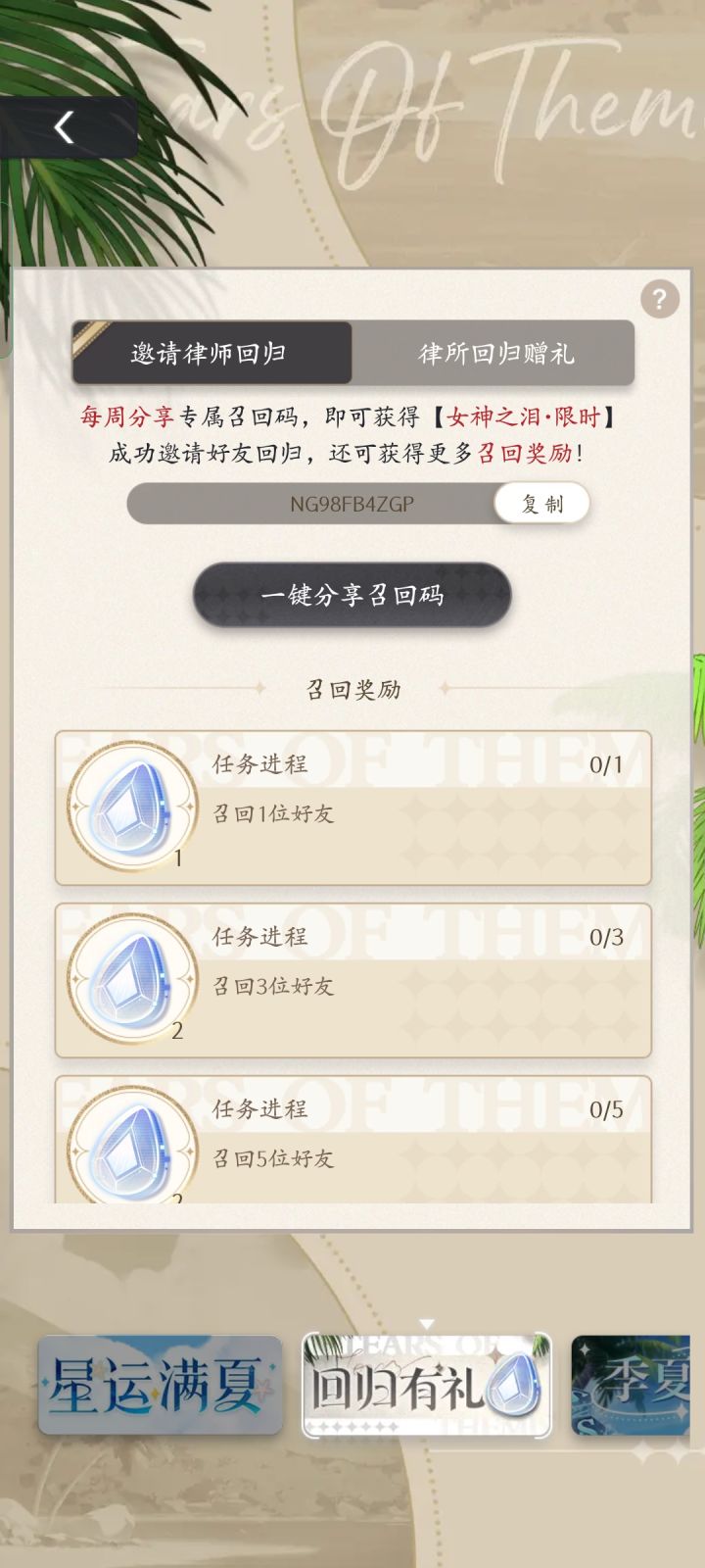 回归码:NG99XG3HGP还没有填的姐妹帮忙填一下吧😗祝大家都能抽到自己喜欢的卡
