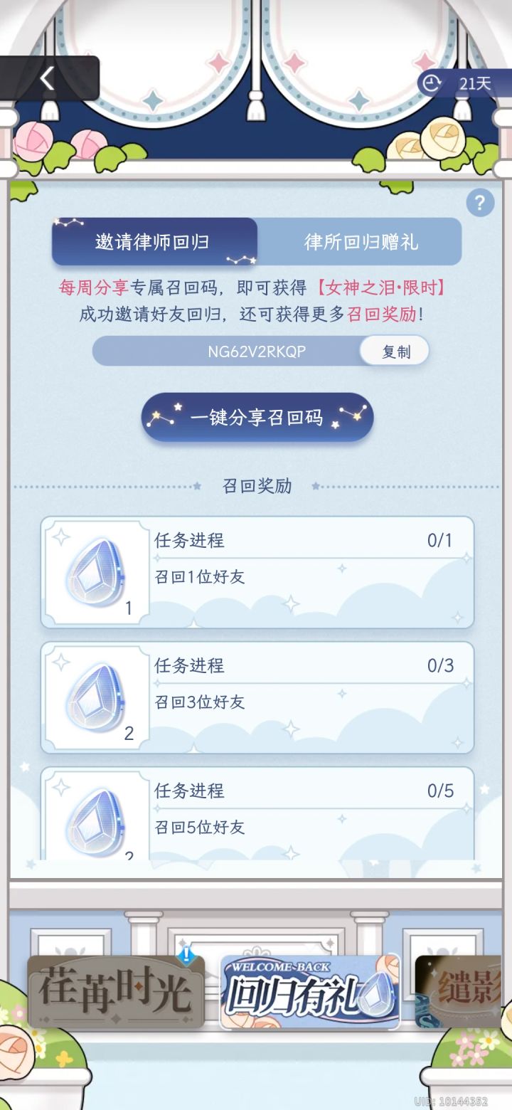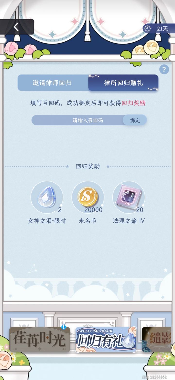 美丽的律师小姐们能不能帮帮填回归码NG2ANW83RP祝律师小姐们单发出金十连十金跟男主们99#老玩家回归#未定事件簿三周年#未定事件簿回归码