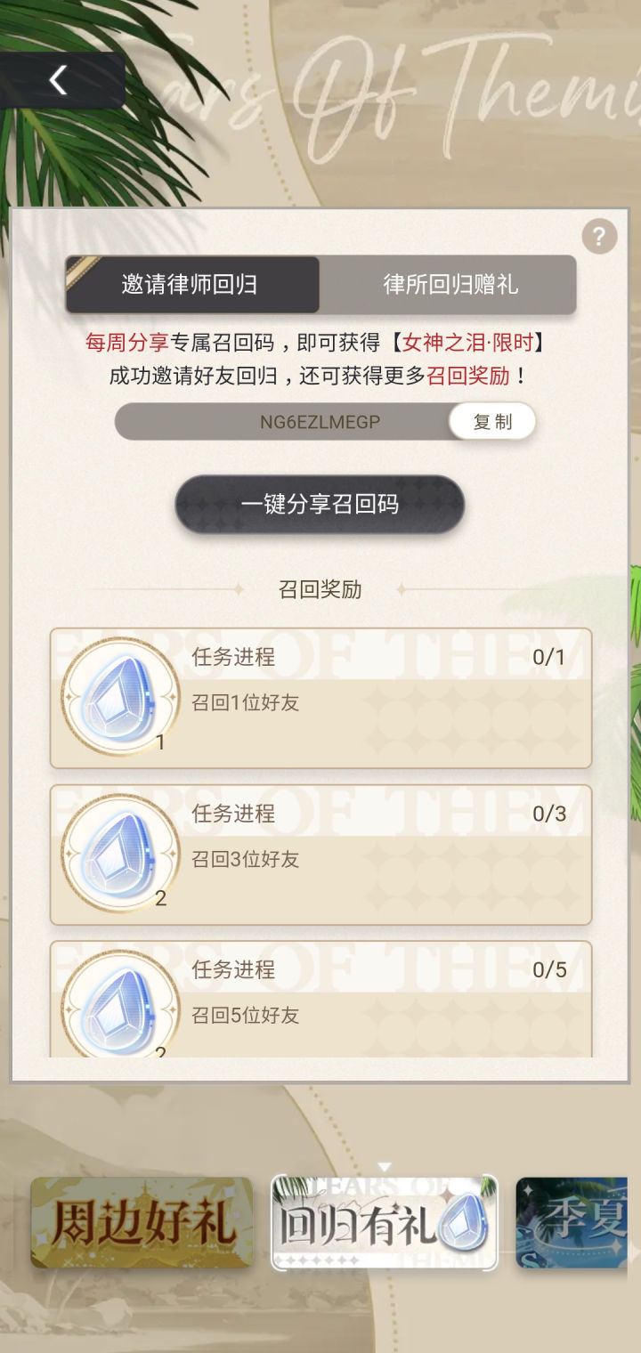 刚回坑,有没有人互填召回码呀我的:NG96JXAJ9P
