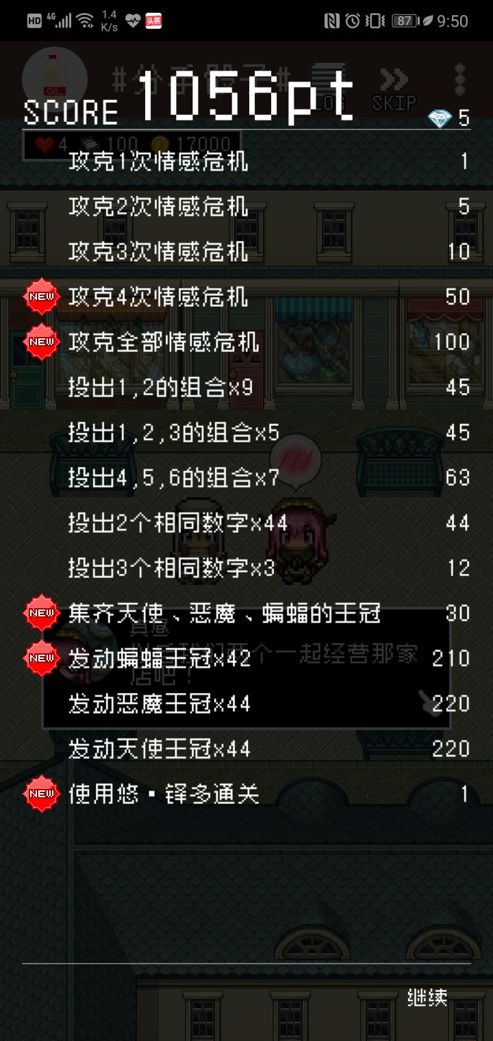 1)看到这零零散散的几个new,就知道我之前玩过多少次了,每次都过不了几关。直到我获得石油王,这次通关是第一次使用这个角色,只有等级一的能力(当然石油王提升了等级,也就是钱多了些2333)。2)天哪,有钱就是好啊。一开始没打过工,后来陆续拿到蝙蝠王冠、天使王冠、恶魔王冠(这三个真的超重要!)之后就没有休息没有打过工了,哈哈哈哈哈。3)还有一个忘记叫什么的道具了,能力是摇到3,4后,点数总和+