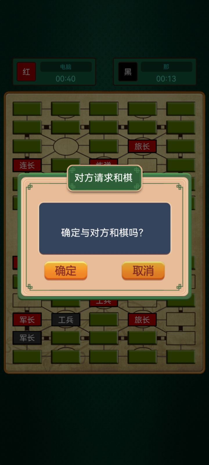 棋子没有我多,棋子没我大,只有一个炸弹得瑟个啥,像这样的局要么他投降,要么和,跟我耗了最起码接近一小时,无语,你赢了