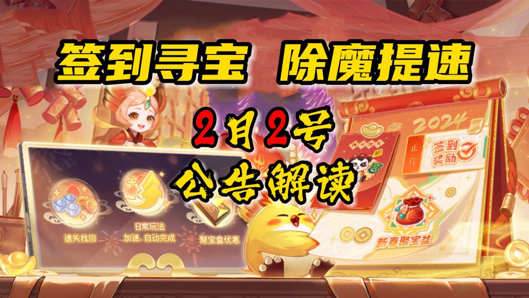 2.2公告解读:签到寻宝聚宝盆,除魔提速再减负