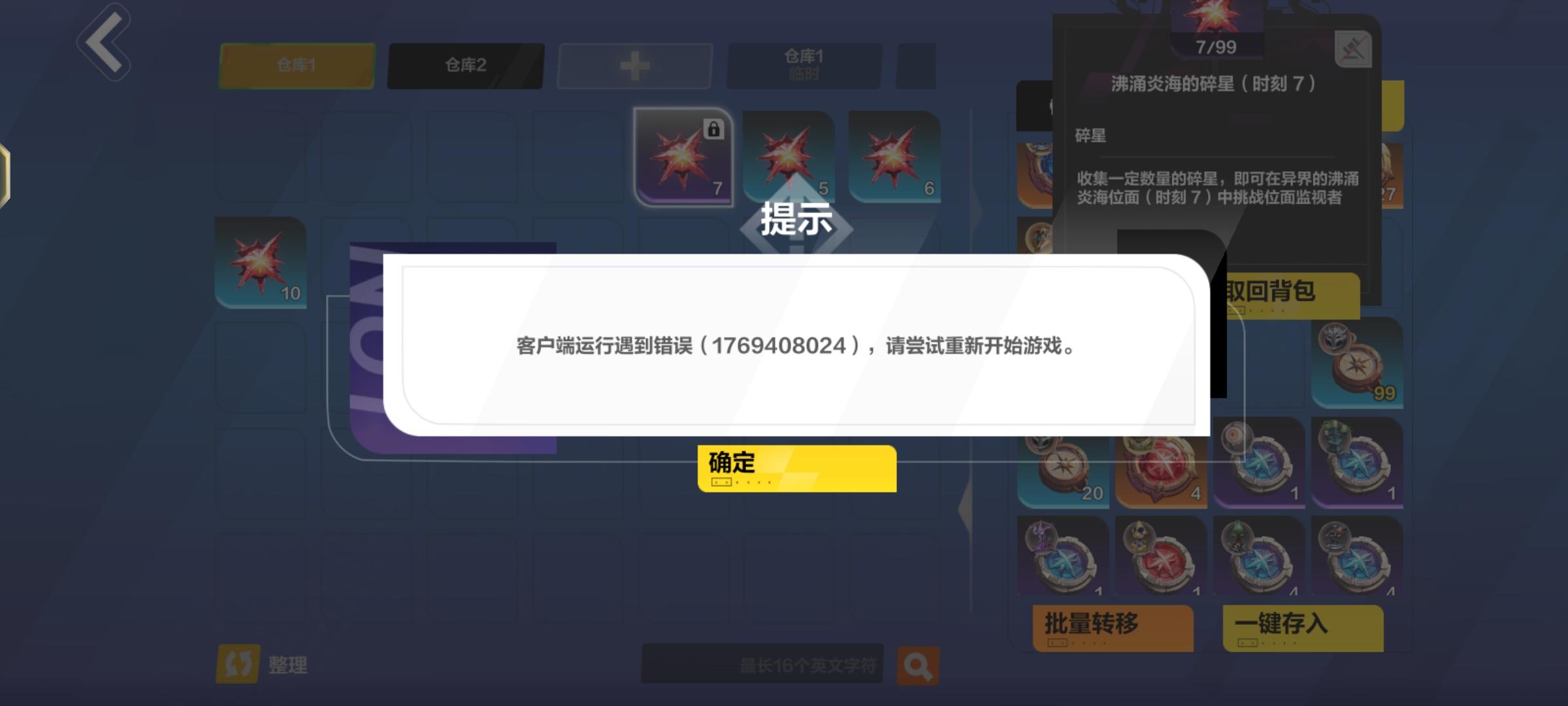 很久没玩了,角色转永久服了,手贱一键转移进仓库,这几个拿不出来,一点取出就这样,求解