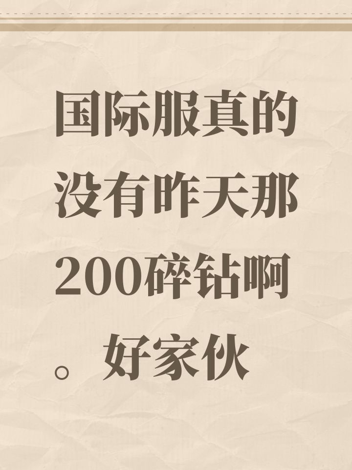 国际服真的没做昨天那200碎钻啊。好家伙