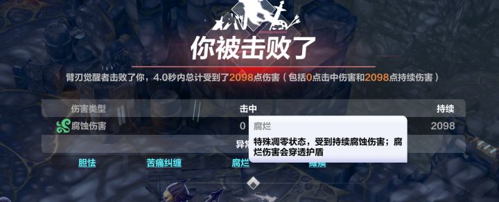是bug吗?深空中美梦怪物施加的“腐烂”,就不算特殊凋零效果了?带着-100%凋零伤害,还是穿盾死了。