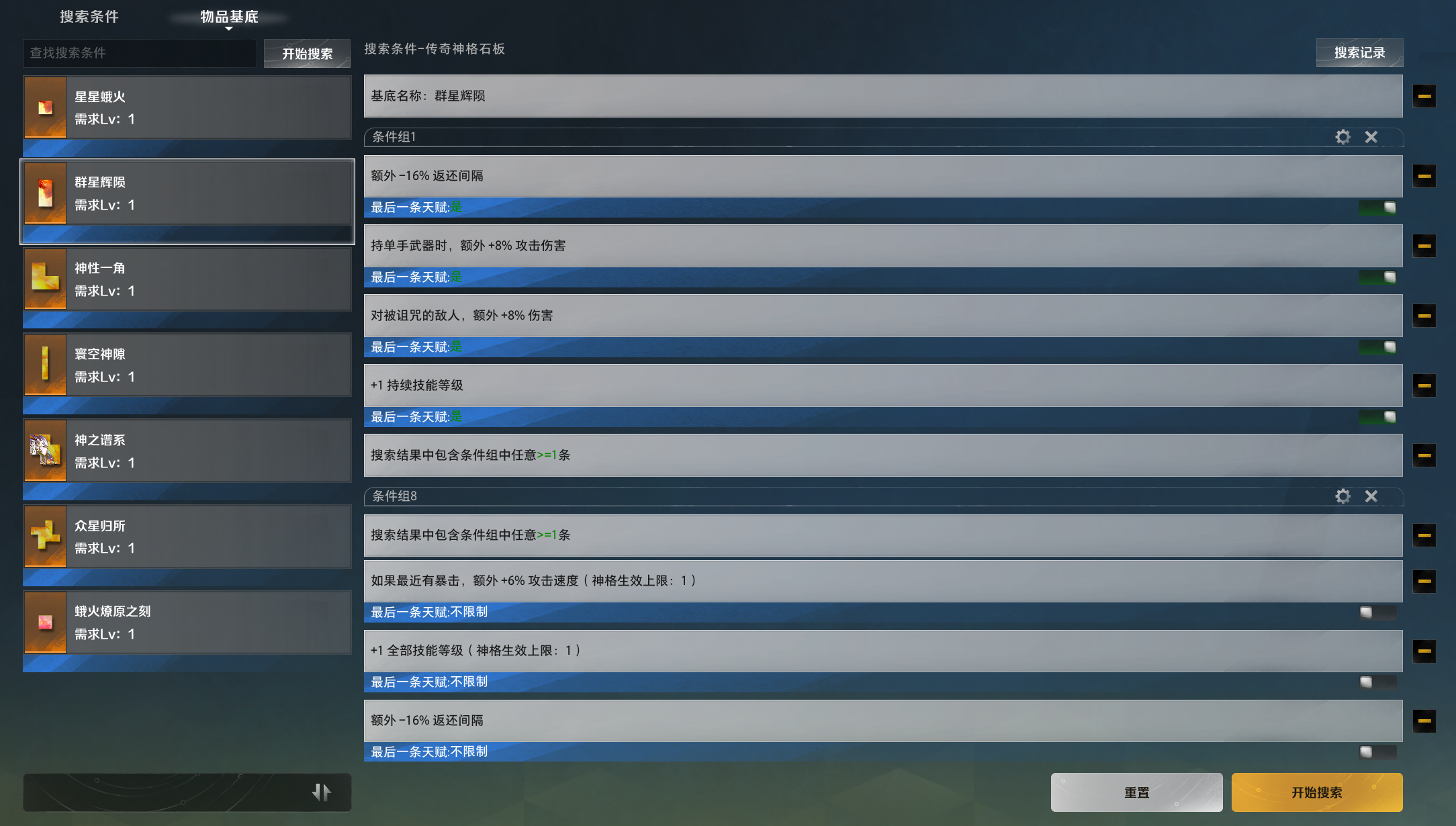 急!拍卖行神格石板,添加条件组搜索的BUG