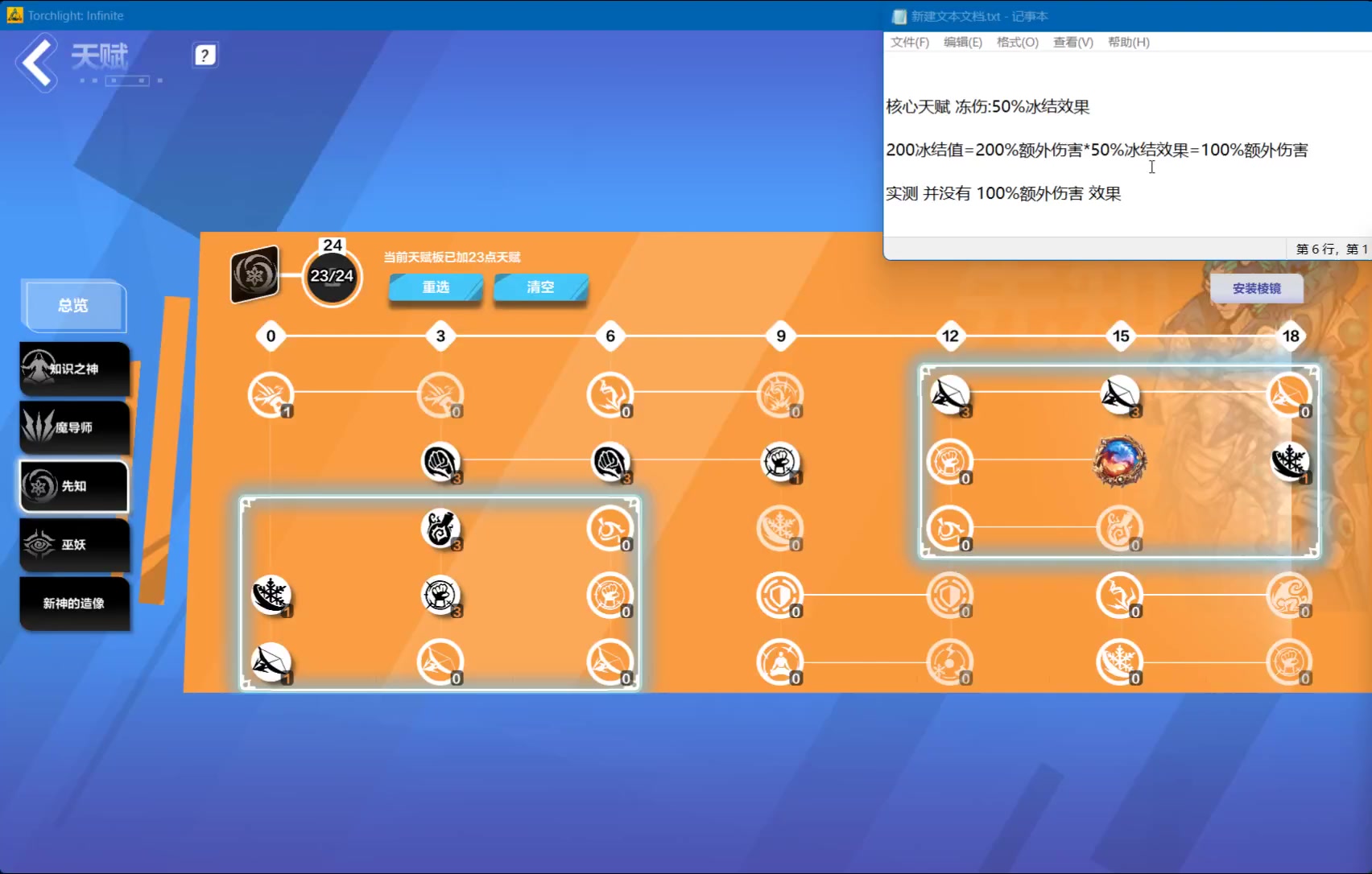 核心天赋 冻伤:50%冰结效果 200冰结值=200%额外伤害*50%冰结效果=100%额外伤害 实测 并没有 100%额外伤害 效果