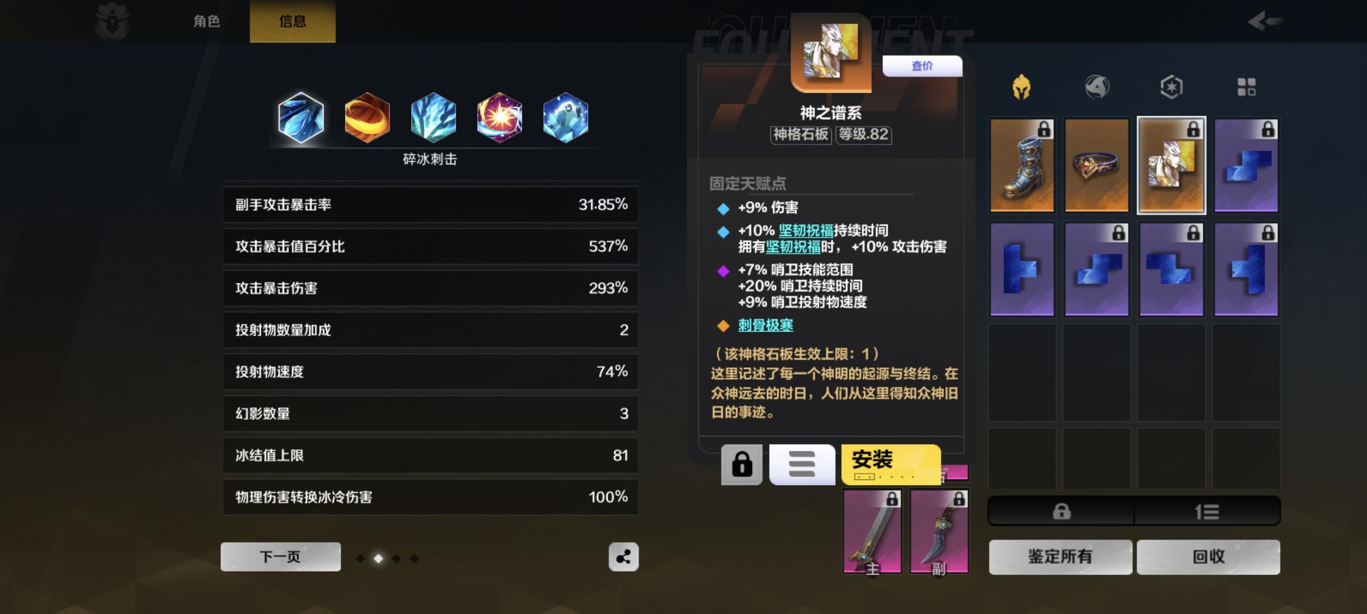 刺骨极寒的属性是+50冰结值上限,但我带不带传奇板子这个冰结值都没有变化。如果更换成普通板子+5冰结值的板子后,面板就有变化。这是遇到bug了么?