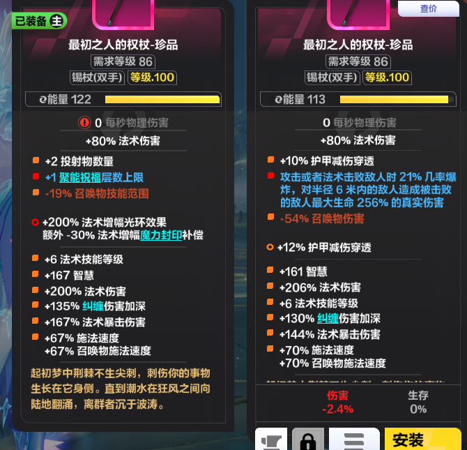 看图 打桩光环效果完全没吃到武器序列的光环效果! 当时做出来带上就感觉伤害不对,我200环效加一层聚能祝福(带冰手+积聚)伤害居然没爆炸那把武器高。。。离谱也不能这么离谱吧 22护甲穿这么牛逼、? 后面就发现法术增幅压根没吃上序列环效!