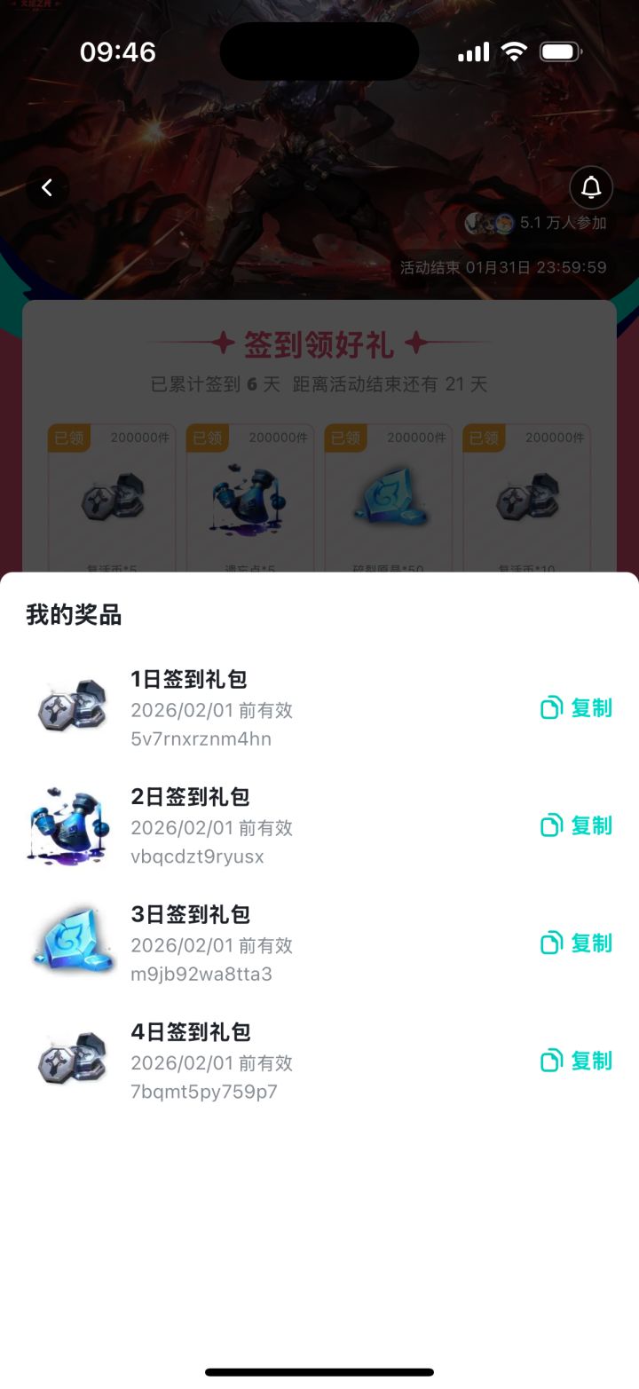 不是 我礼包码呢 就光签到不给🐎了