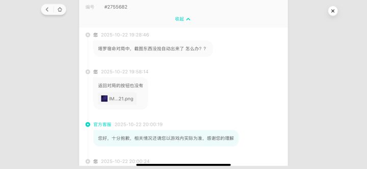 之前反馈的众神试炼 没消息了 今天塔罗掉了个东西没捡 截图自动离开对局了 这客服是机器人吧? 只会这一句 问什么都以游戏实际为准。 6~ #火炬之光无限