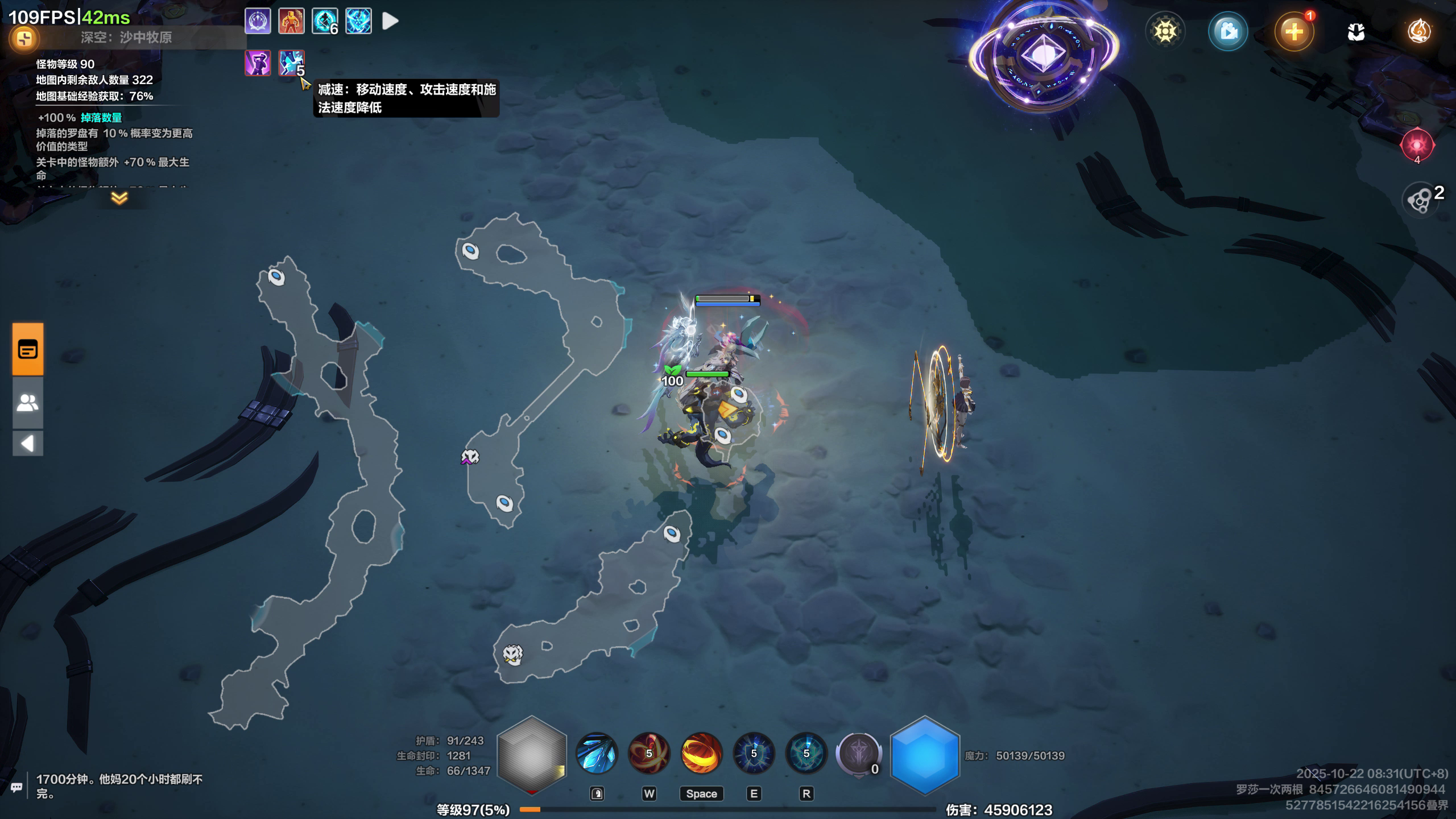 天命上凑了100%减速抵抗,实际上不生效。一个bug浪费我几千火打的天命,还有地图成本