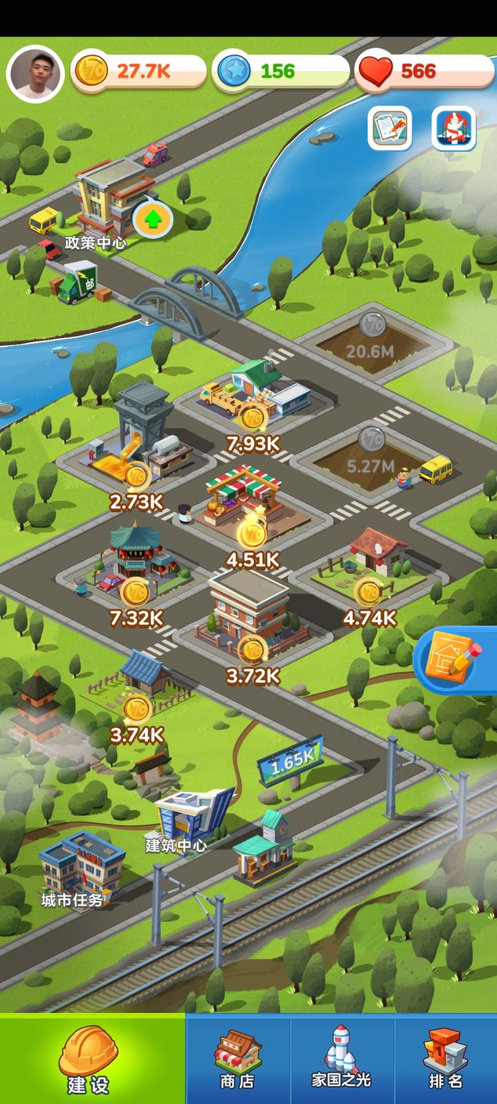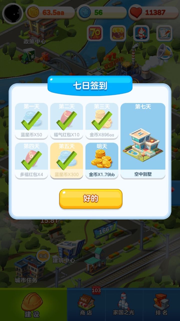 ★这个游戏前期的主力是蓝色,而且星级就是王道!蓝色有五星后,开始转五星紫色建筑。(五星满级,重复给金币,参考相册)★不要雨露均沾,就集中升级一个建筑,其余都上Buff,先富带动后富!但是这个建筑本身的星级和它羁绊的建筑星级必须高,我用的是人人都爱的居民楼。★地产兴邦,大力发展房地产,商业晚点来,不要碰加成较少的工业,毕竟社会要进步就必须积极发展地产和商业这种第三产业。这游戏就是这么真实,赶快